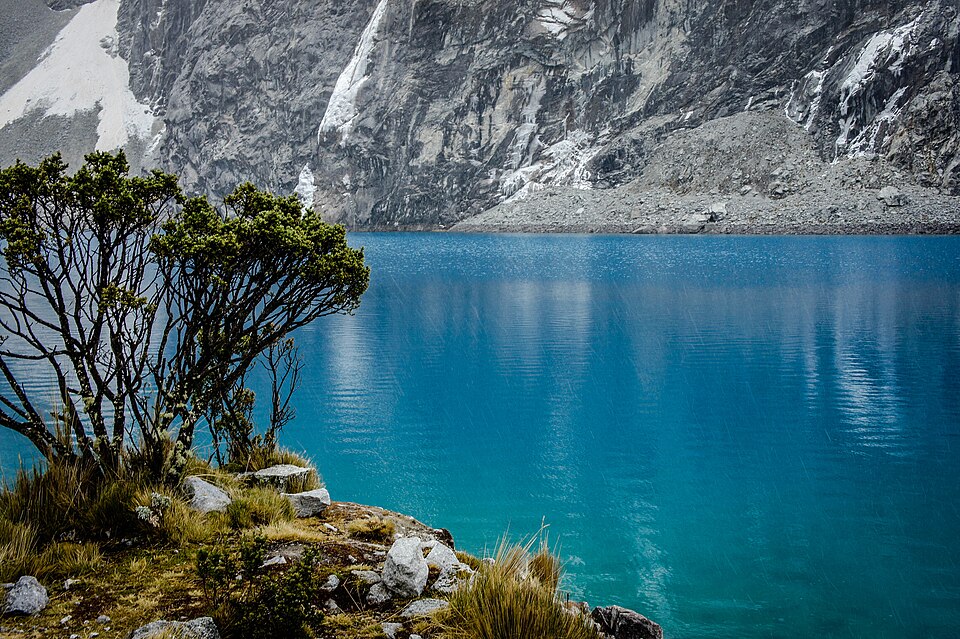 Entorno Montañoso : La laguna está rodeada por imponentes picos nevados, como el Chopicalqui (6,354 msnm) y el Huascarán (6,768 msnm), la montaña más alta del Perú. Estos colosos andinos ofrecen un telón de fondo espectacular.