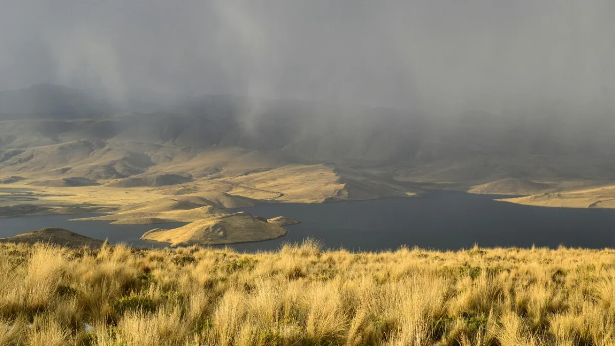 Entorno Montañoso : La laguna está rodeada por imponentes cerros y montañas andinas, cubiertas de vegetación nativa como ichu (pasto alto) y pequeños arbustos. Durante la temporada de lluvias, la vegetación se vuelve aún más verde y vibrante.